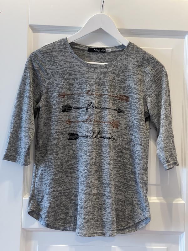 Симпатичний реглан-футболка з довгим рукавом Molegi, розмір S, ПОГ 43 см, ДОВЖТНА 60 см, ПЛЕЧІ 36 см, РУКАВ 3/4 36 см. Стан Ідеальний!