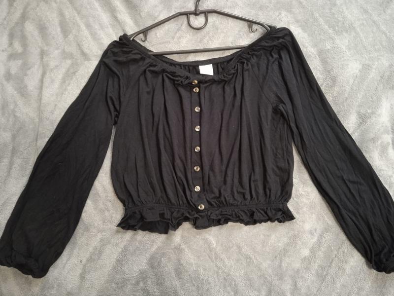 Черная кофта с рюшами снизу, очень красиво смотрится.
