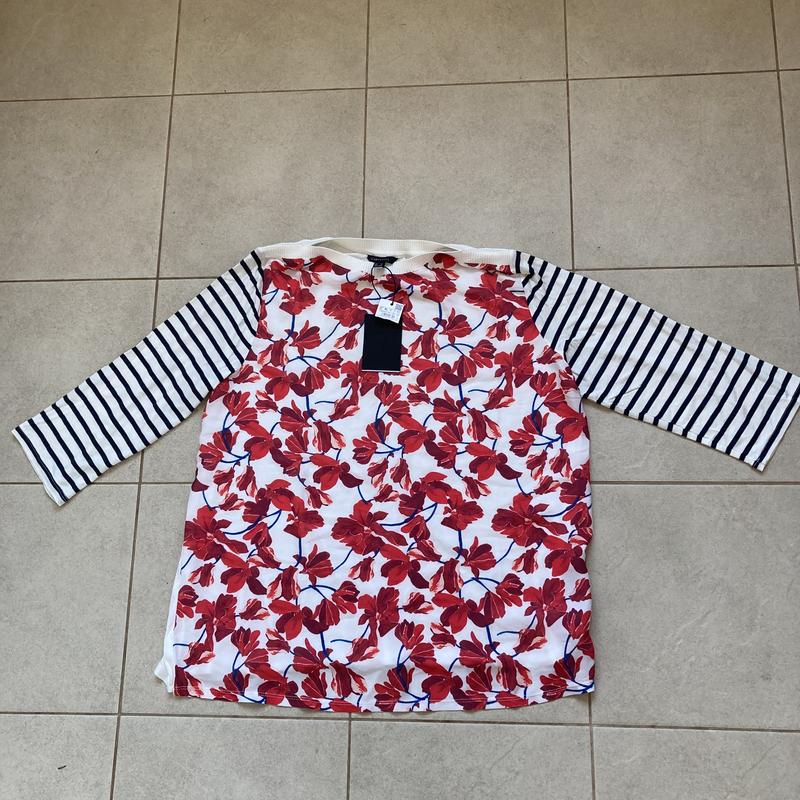 Женская кофточка Cortefiel Испания размер ХЛ (пог 55, длина 64), спинка белая: 95 вискоза, 5 эластан. Лицевая сторона: 100 полиэстер, рукава: 72 вискоза, 26 полиэстер, 2 эластан. Качество 💣