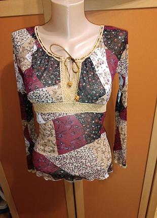 ткань гипюр, обшитая кружком цветная, размир 36-38, замиры: длина 53, грудь 38, талия 32 тянется