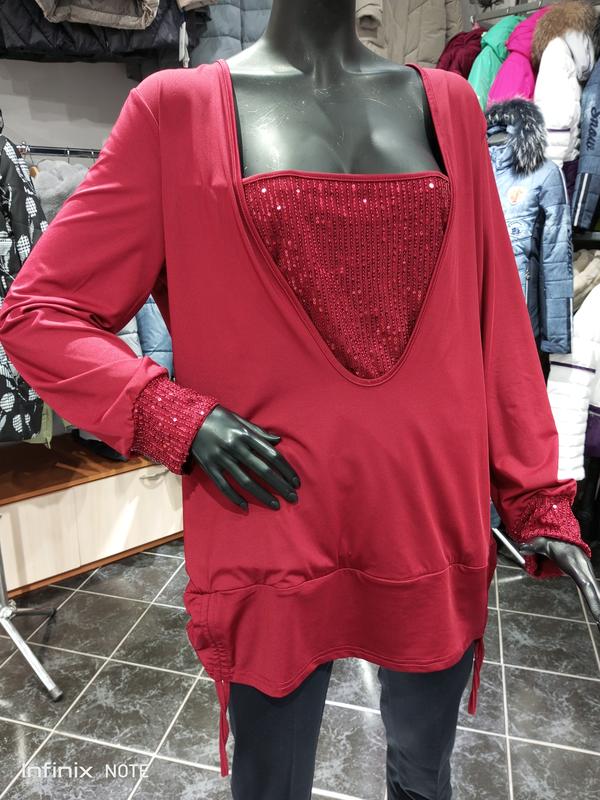 женская нарядная кофта, качество хорошая-эластик который тянется, садится по фигуре красиво, в новом состоянии замеры: - пог 58-75 - пот 57-70 - ширина внизу 63-80 - длина от плеча 77 состояние новое 👍 Пишайте на мою страницу 😇