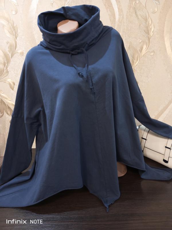 кофта свободного покроя или оверсайз, по низу идет шире с такими себе хвостиками, выглядит супер и интересно, качество красивое,е хомут замеры: - пог 81(тянется к 93) - ширина внизу 106 (тянется до 120) - длина от плеча 61+-,81+-, состояние идеально 👍 Пишайте на мою страницу 😇