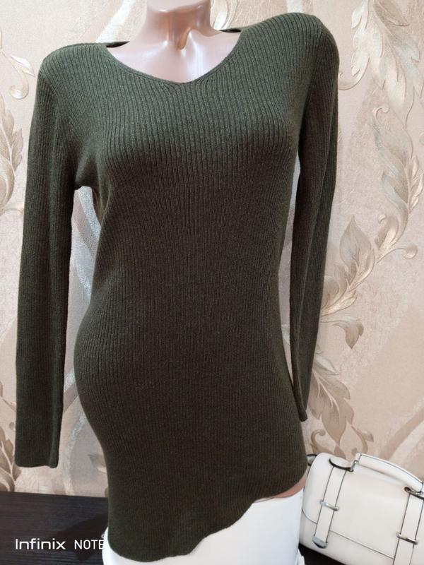 красивая кофта в рубчик цвета хаки (в тренде), которая тянется и красиво ложится по фигуре, с правой стороны немножко длиннее, чем с левого,она одновременно и простенькая и стильная👍 замеры: - пог 40 (тянется до 70) - пот 34 (тянется до 70) - ширина внизу 45 (тянется до 80+) - длина от плеча с правой стороны 85 - длина от плеча с левой стороны 70 состояние идеальное нового 👍 Пишайте на мою страницу 😇