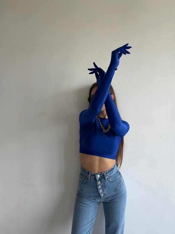 Кроп-топ зі знімними рукавичками • розміри: XS-S, S-M, M-L • кольори: електрик, хакі, червоний, малина, чорний • тканина: біфлекс 🖇️параметри моделі на фото: 85/62/92, зріст 165 см; розмір на моделі: XS-S 📷фото наші, захищені авторським правом 📌працюємо офіційно, оплата на ФОП