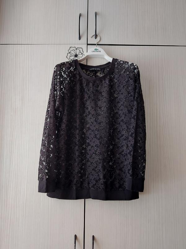 Кружевная черная кофточка, как новая, можно одевать под майку Размер указан 14 (46 или Л), цвет черный Длж 65, пог 55, рукав от шеи 70 Цена 130 грн