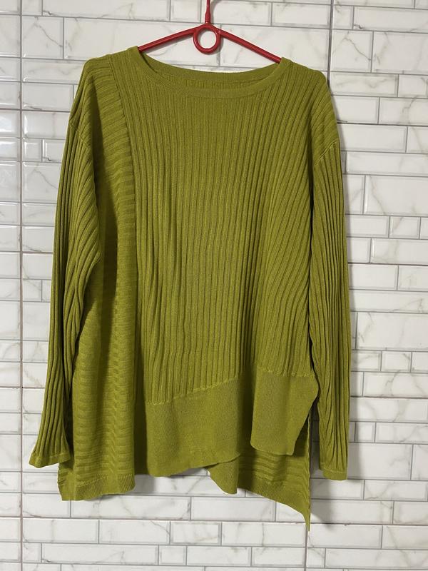 Стильный джемпер реглан Бирки на фото Длина 69, хвосты длиннее Рукав 55, плечи спущены -54 Бицепс 23+ Пог 58+++ Понизу 64+++