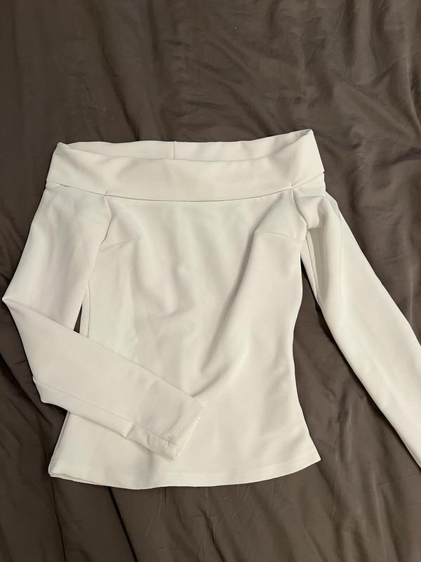 Кофта befree cо спущенными плечами, в белом цвете, по фигуре, на молнии сбоку