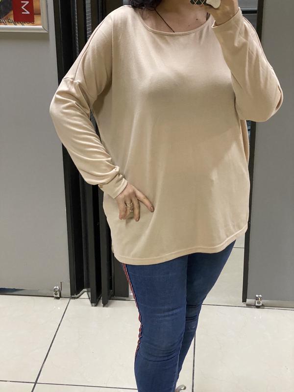 Колір кави з молоком реглан тунічка. Довжина 70 груди напівоб'єм 71 низ напівоб'ємом 70 є розрізки з боків Рукав від шиї 75 Тканина поліестер та еластан