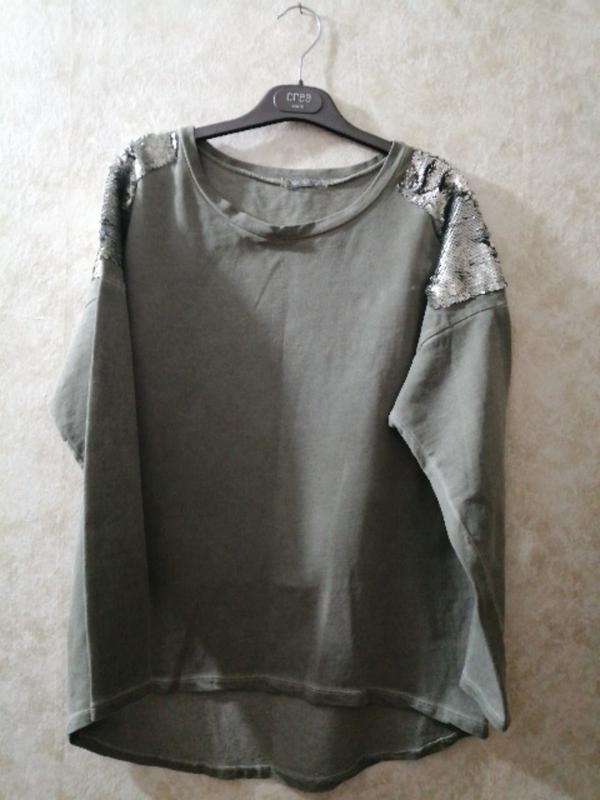 Кофта, размер Л, состояние идеал, Италия. Мягкие паетки. Раз гуляла. Замеры. Длина впереди 55,длина с зади 73,ширина под грудью 55,рукав от плеча 45,реглан,плечо,от горловины 22,5.Замеры паеток, длина 20,5,ширина 13. Очень стильная. Коттон 100%,очень приятная к телу. Куплена в Италии.