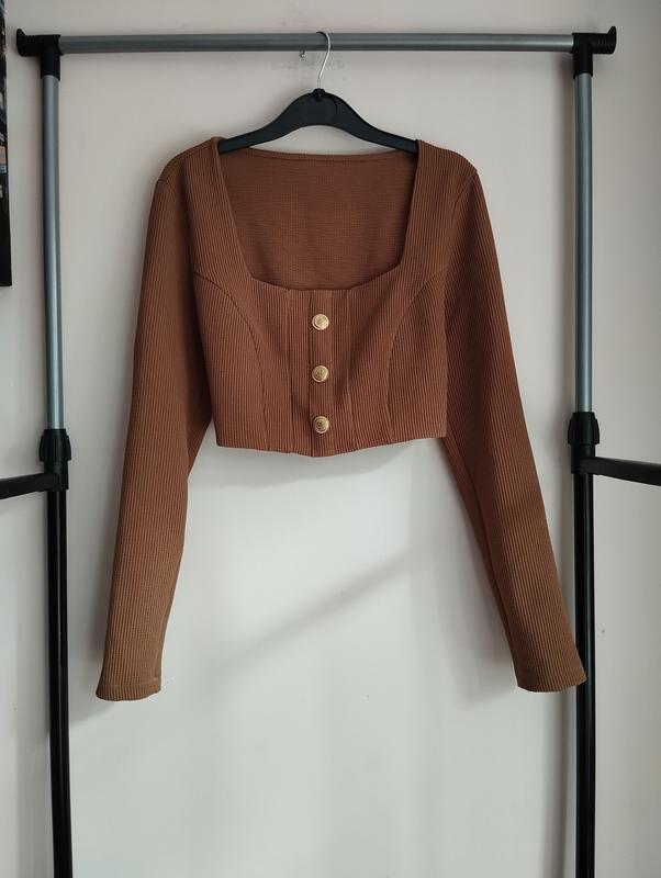 Стильный кроп-топ с длинным рукавом цвета мокко Очень стильно смотрится на теле ткань в рубчик с красивыми пуговицами Размер М