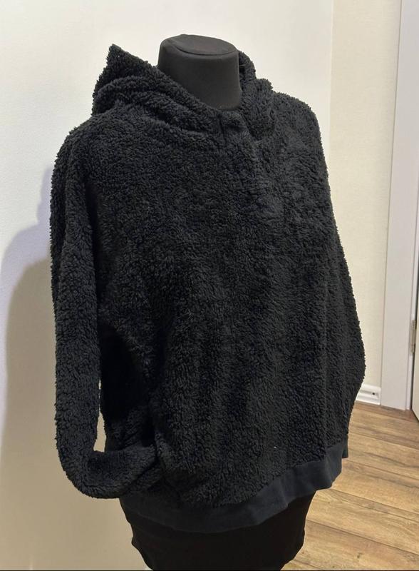 Черная теплая флисовая кофта с капюшоном, застежка на кнопках, размер XXL замеры Плечи 69 см.,грудь 73 см., длина перед 56 см., сзади 61 см.,рукава 56 см