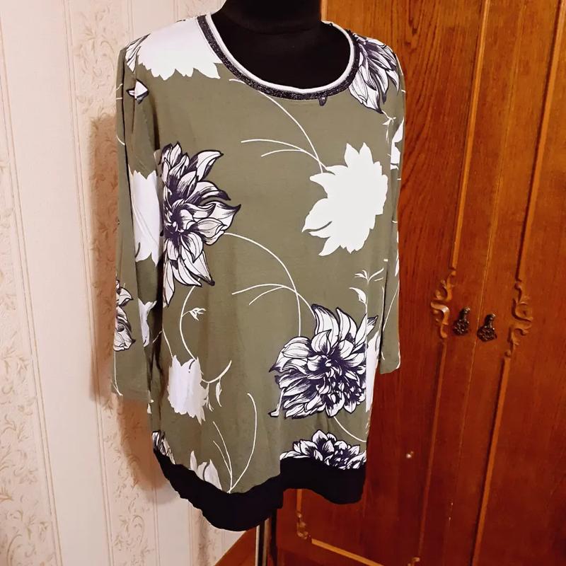Брендовая натуральная ткань катон горловина с изделием серебристой нити люрекса рукав 3/4 низ на манжете отличная моделька!Дл.65 Пл.42 Р 3/4-44 Ог 120-130 Об 120-136см!👌