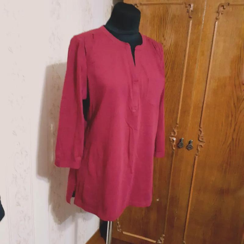 Брэндовый натуральный катон воротник стоечка с виобразным вырезом на пуговках с нагрудным карманом цвет марсал рекомендую👍Дл.70/75 Пл42 Р 3/4-47 Б по 18+ Ог 112-120 Об 120+б/р в-6см!