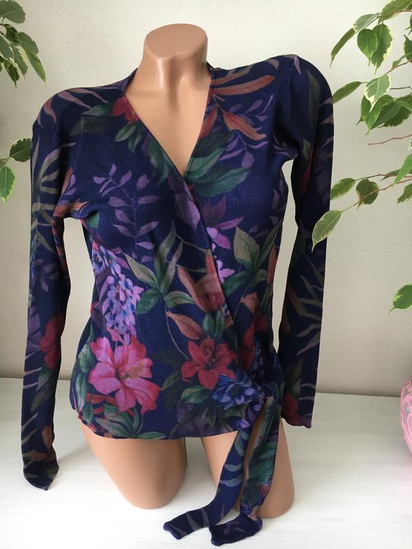 Дуже красива натуральна кофтинка Тканина переважно віскоза (80%), приємна до тіла, дуже гарно тягнеться Виглядає розкішно завдяки насиченому принту і дуже вдалому поєднанню кольорів Зав’язується збоку Завдяки фасону і еластичності тканини відмінно підійде для розмірів від М до L- XL Стан без дефектів і ньюансів Орієнтуйтесь на заміри👇 Довжина від плеча - 55 ПОГ - 49++ Ширина по низу - 40+ Довжина рукава -.58+