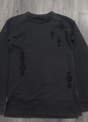 хлопковый свитшот с разрезами серого цвета тепленький на байке, тактильно очень приятный к телу с разрезами по бокам по бирке размер М подойдет на L пол обхват груди 56 длина 73 плечи 66 рукав 55 стан превосходного фирма river island виготовлено в Бангладеш 100% котон
