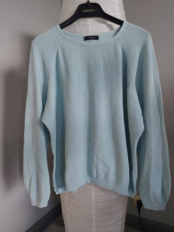 Вільна кофта Autograph в ідеальному стані. Розмір веазано 40(л). Тканина структурна 100%бавовна. По спинці гудзики, гарний блакитний колір. Рукав реглан. Довжина від центра горловини77см, під руками67см, довж.по спинці54см
