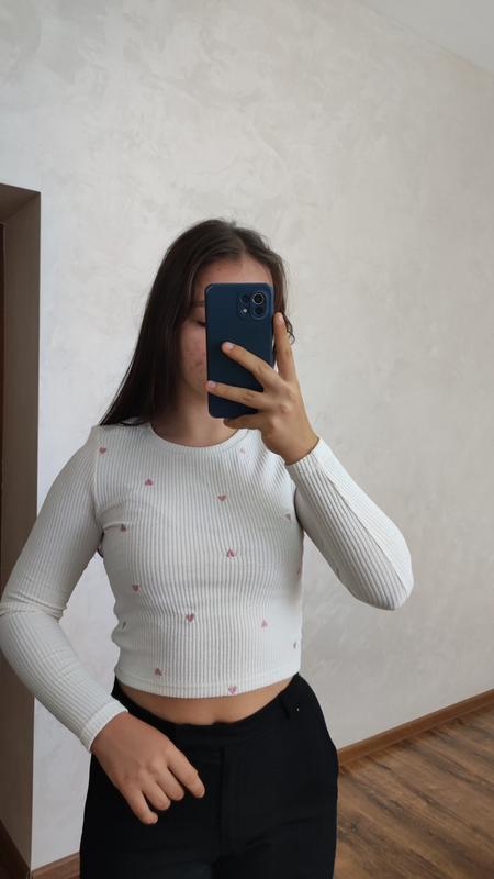 Очень нежная и приятная ткань. Принт в сердечка (спереду). Ткань немного просвечивает Мои параметры Рост 163 см ОГ 90 ОТ 69 ОБ 102