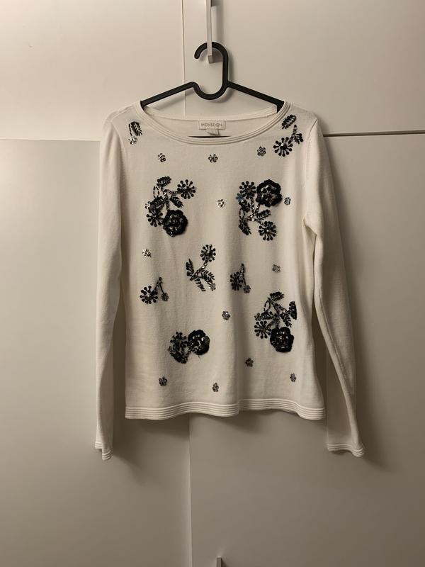 Кофта женская белая с цветами Размер L Monsoon Длина 57 Рукав 60 ПОГ 48