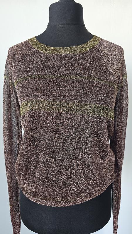 Новая кофта от Isabel Marant розовая с черным люрексовая, имеет декор в виде полоски золотистой, рукав реглан, прямого кроя, тянется состав: 65%купра 35% полиэстер замеры: объем груди 96см длина рукава75см