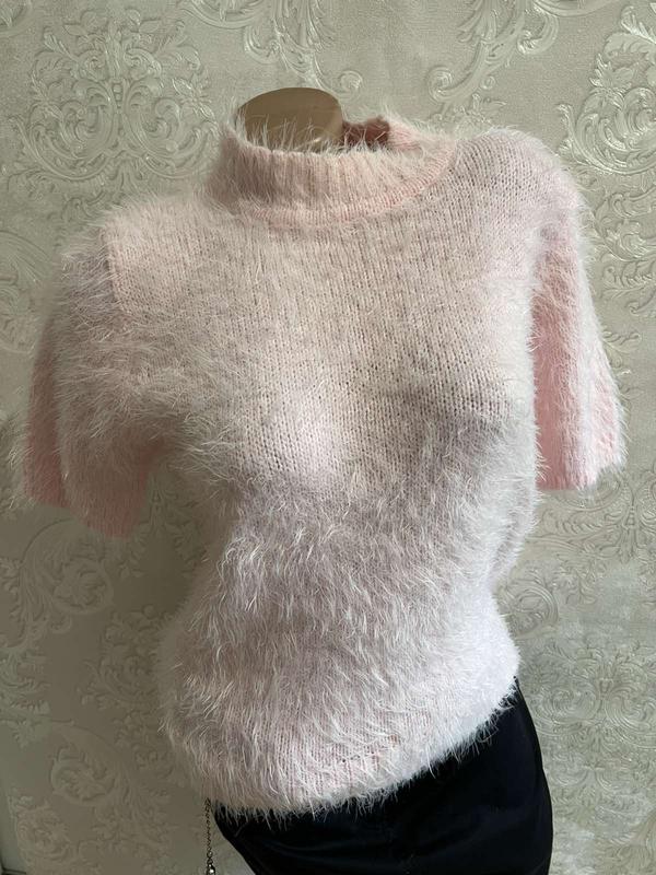 Кофтина травка нежно-розового цвета с коротким рукавом,приемная к телу (тянется) Об/г-92 см. Об/т 80-85 см. Длина-54 см. Размер-М