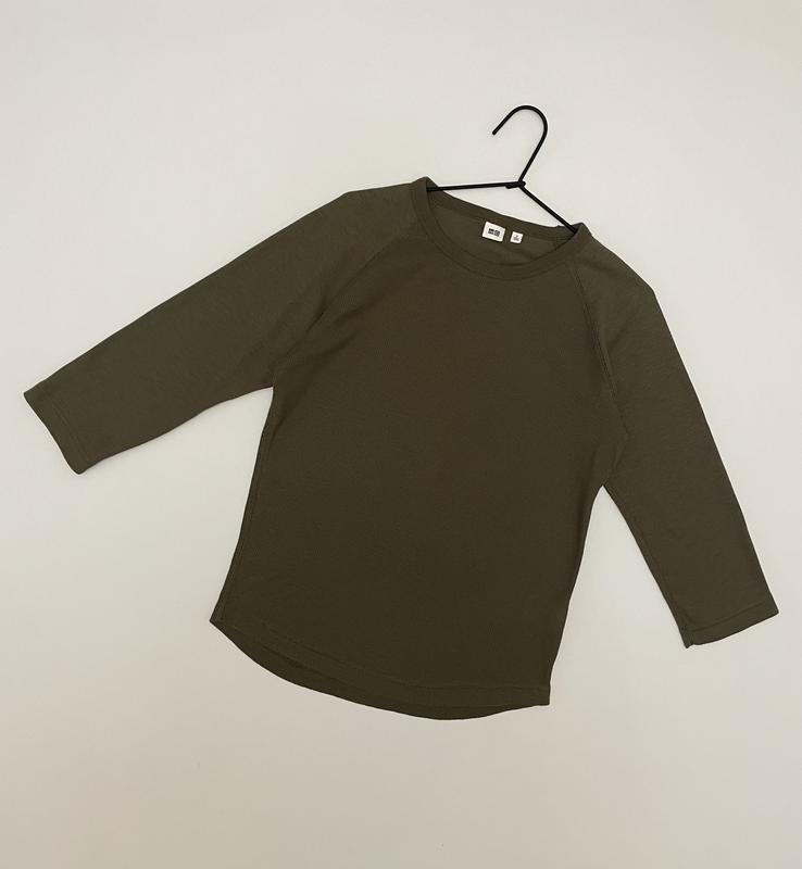 Джемпер реглан женский цвета хаки «вафельная» ткань рукава 3/4 uniqlo, размер s