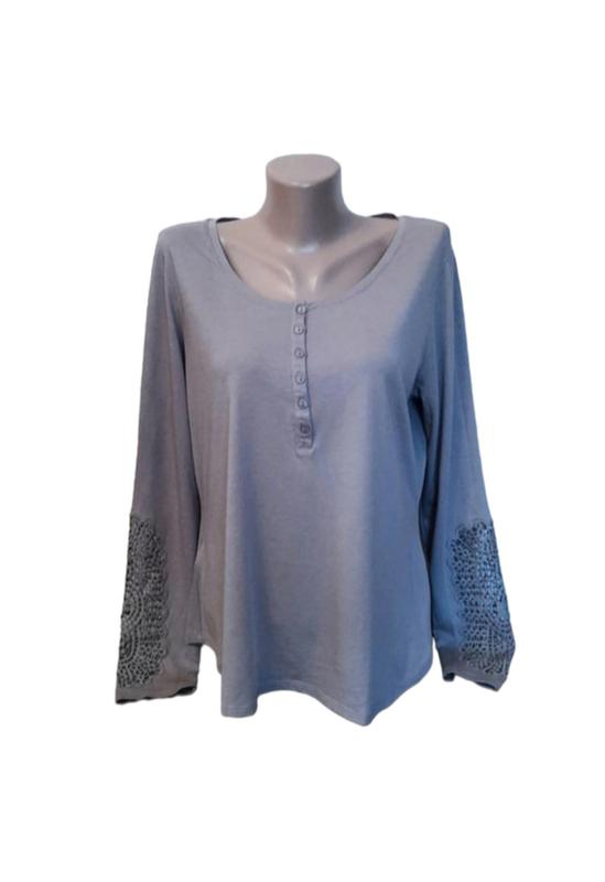 Кофта цвета кофе с молоком. Кружево на рукавах. Состав : 60% модал (вискоза из буковой или эвкалиптовой древесины), 40% хлопок. Длина - 61 см, ширина под руками - 50 см, длина рукава - 62 см.