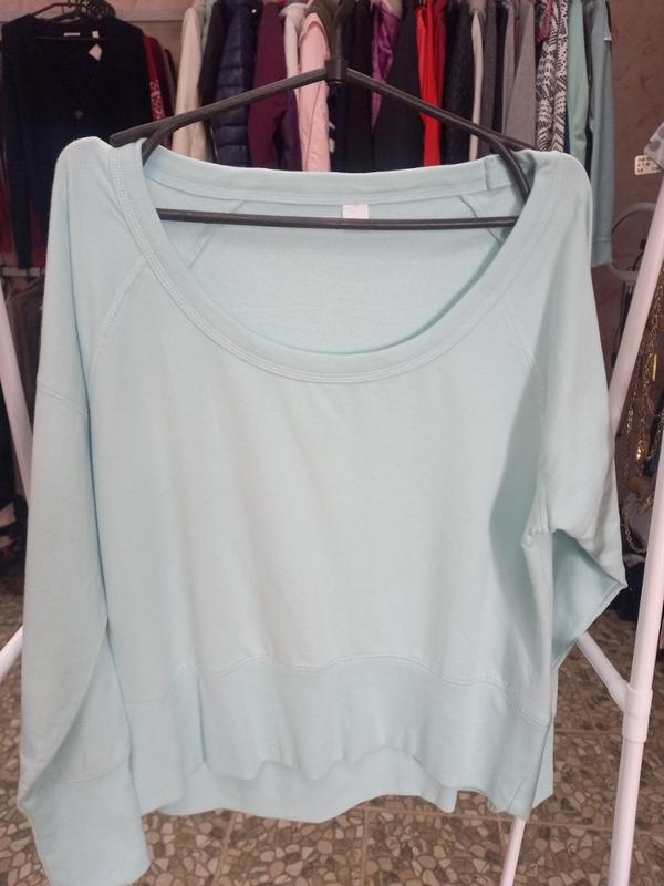 Реглан голубого цвета с глубоким декольте.Бужежно надевать на топ.Новый.