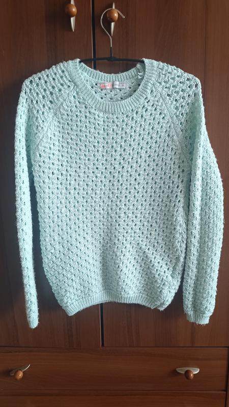 красивый мятный цвет, на фото не передался. Хорошее состояние, на осень и весну красивый свитерик, размер S