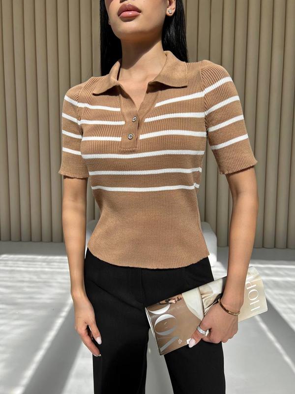 Встречайте новую вязаную футболку поло в полоску! Этот стильный и уютный гармент станет идеальным дополнением вашего гардероба. Сочетайте с джинсами для повседневного образа или с классическими брюками для более формального вида. ▪️Арт. Diego ▪️Состав: 30% вискоза, 70% акрил ▪️Кольори: Кэмел-белый Белый-черный Черный-белый Белый-кемел ▪️Размер : 42-46 🏷 Цена: 1200грr) ___________________________