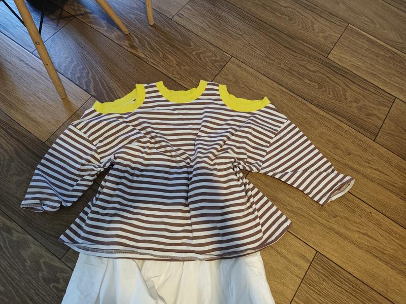 Приятный костюм для теплых вечеров. Кофта "три горла" и белые прямые брюки с завязками.Европейский размер 22.