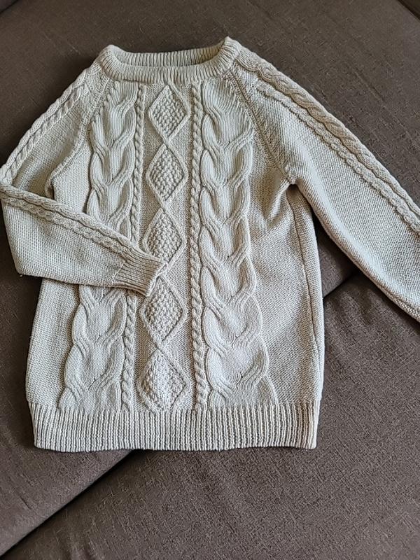красивый вязаный по заказу джемпер. Замеры под проймой 46 см, прямой, ровный, длина рукава-реглан 60 см, длина свитера 60 см. Мягкий, приятный, нити натуральные.