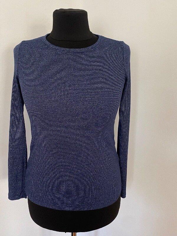 Цвет синий с серебристым вкраплением, размер М указано, демонстрировано на манекене 52 размера. Стан нового. Длина - 62см, плечи - 36см,рукав от плеча - 63см, пог - 45см, пот - 42см, поб - 47см.