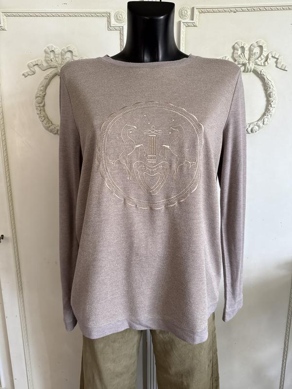 Якісний жіночий реглан від Escada sport. Колір бежевий, вкраплення металізованоі ниті золотистого кольору. Склад:віскоза/поліамід/металізована нить/еластан . Розмір по бірці-М. (71/22/5/2). Заміри:довжина-66 см, ПОГ-52 см, ПОБ-52 см, рукав-61 см.
