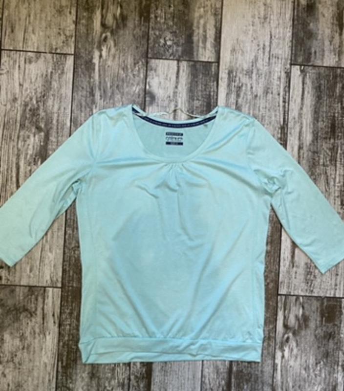 Кофтинка дуже красивого бірюзового кольору Стан нового, без нюансів . Без бірок Розмір хл. Загальна довжина 59 см Рукав від шва 41.5 см Груди 50.5 см По низу 41 см