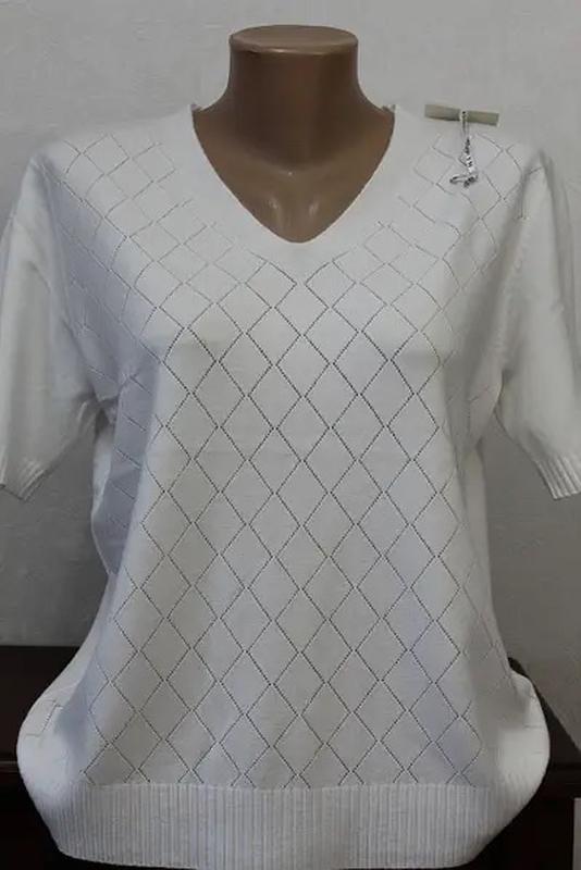 ЩЕ БІЛЬШЕ ГАРНИХ РЕЧЕЙ НА МОЇЙ СТОРІНЦІ! Підпишіться 🔥🔥🔥 Кофта з V- вирізом, перфорація тільки попереду Кольори білий, бежевий, оливковий, світлий денім ( голубий) ОГ 102-104 см Довжина 59 см