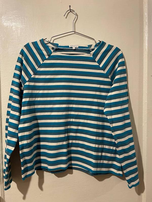 Топ реглан в смужку TOM TAILOR В идеальном состоянии 👌 Размер L, бирка с составом отсутствует но Ткань плотная, коттон с емкостью Длина рукава 67 полуобъем груди 56 полуобъем ширина низа 59 длина 57