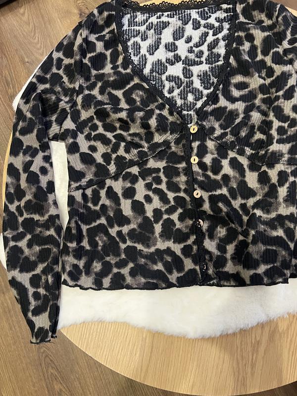🐆 Стильна прозора кофтинка від SHEIN Curve 🐆 ✨ Легка та дихаюча тканина з леопардовим принтом ✨ Застібається на гудзики спереду ✨ V-подібний виріз, оздоблений тонким мереживом ✨ Довгий рукав, еластичний матеріал ✨ Ідеальний варіант як на топ, так і окремо для сміливих образів 📏 Розмір: 2XL (орієнтуйтесь на заміри) 🔖 Стан: нова, з біркою Заміри на останньому фото