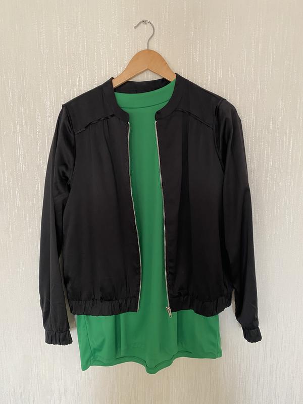 Легкий чорний бомбер Розмір 38/м Заміри Довжина 57см Плечі 41см Підпахвами 54см Ширина по низу по резинці 46см Довжина рукава 63см