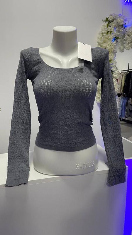 сірий лонгслів з ажурним візерунком