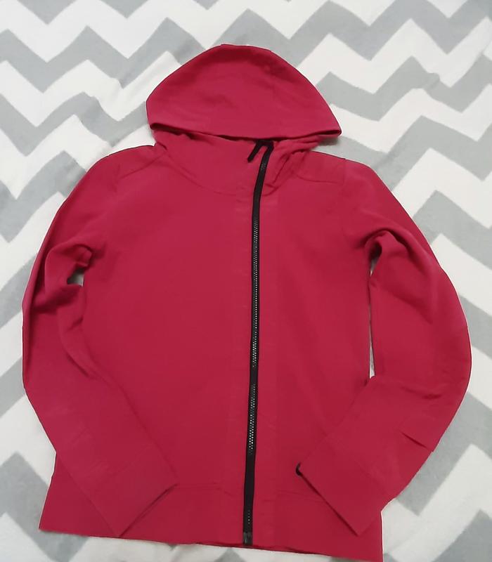 спортивная кофта с ассиметричной застожкой, с капором, кармашки по бокам