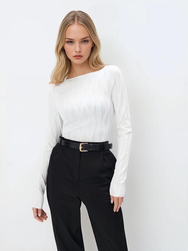 Реглан від Mohito Елегантний білий реглан із фактурною тканиною від бренду Mohito. Має приталений силует, довгий рукав і стильний візерунок у вертикальні хвилясті лінії, що візуально витягують фігуру. Розмір: M