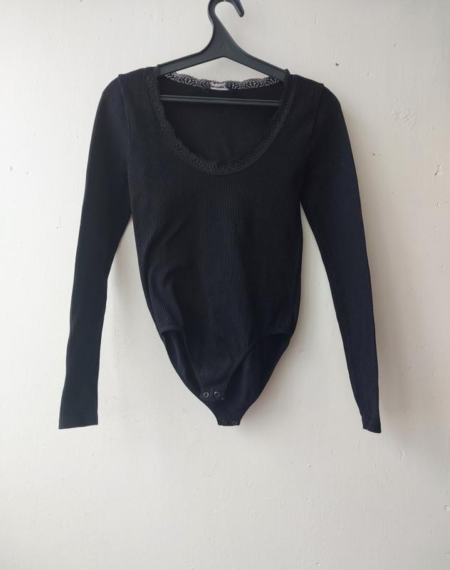 Жіноче боді в рубчик в чудовому стані. Довжина по боковому шву 48 см, ширина 35 см, рукав 62 см. Тканина еластична, гарно тягнеться.