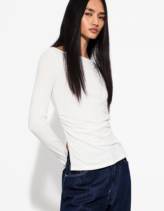 Реглан трикотажный женский, размер S, фирмы Bershka. Состав: 60% полиэстер, 32% вискоза, 8% эластан. Замеры: длина от плеча 58см, полуобхват груди 33,5см не растягивая, тянется хорошо, длина рукава от плеча 61см.