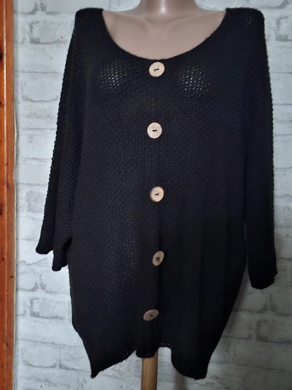 пог-60, длина-60, рукав реглан от шеи-60, акрил, тянется, деревянные пуговицы, р.xl, но подойдет к XXL, потому что хорошо тянется.