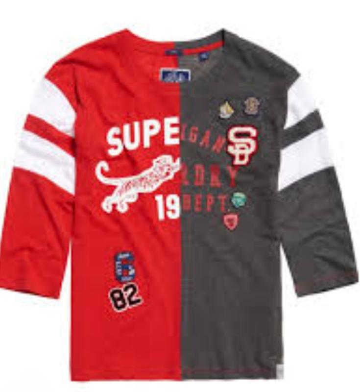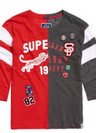Котоновый реглан Superdry Спортивная яркая модель с логотипом, с нашивками По бирке размер м Пог 50 тянется дo 56 см Длина 64 см рукав 3/4 Модель может быть унисекс