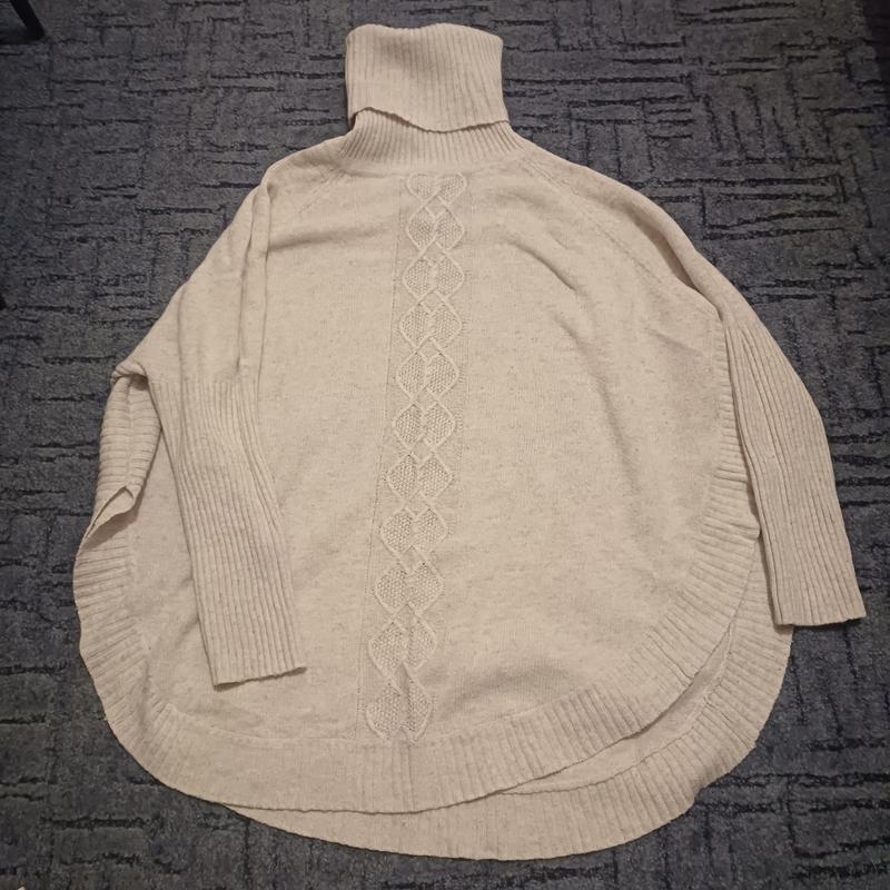кофта женская свободного кроя с высокой горловиной рукав узкий низ скруглен цвет сероватый размер с/м, но подойдет на л