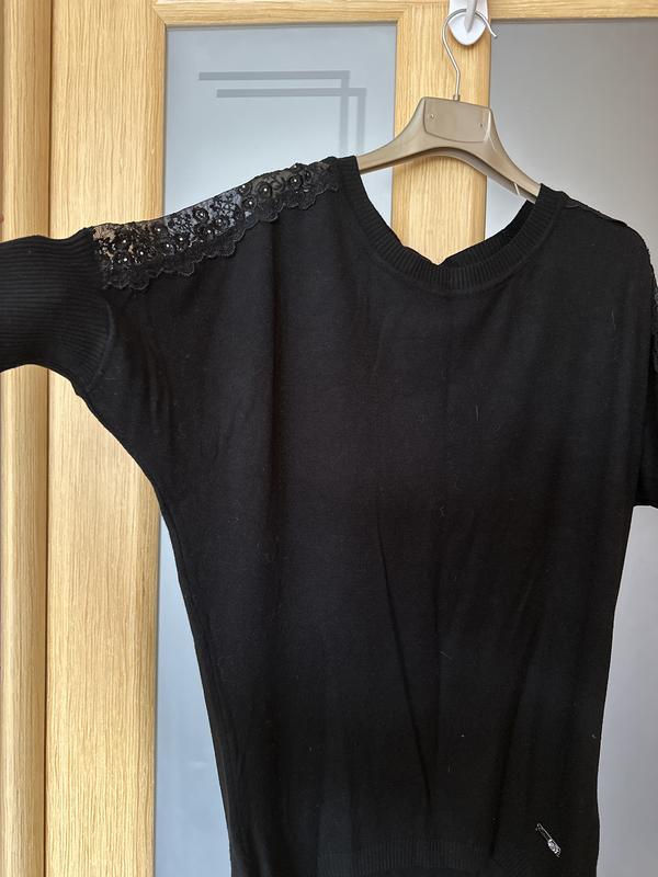 🎁ПОСТІЙНІ АКЦІЇ : 🔥НА ВСЕ - 1+1=3. Обираєте 3. Оплачуєте 2. Менша за ціною йде у подарунок. 🔥ТОТАЛЬНИЙ РОЗПРОДАЖ! Будь-які 5 речей за 1000,0 грн ❗️АКЦІЙНІ ТОВАРИ - оплата на карту 100%, без повернень ❗️ Вдалих покупок 💖 Вільного крою Рукава - «летюча миша» Довжина попереду 64, позаду 77 Довжина рукава від горловини 37 На рукавах - трикотажна резинка Перед коротше спинки На плечах вздовж рукава - мереживо уздоблене камінцями Без дефектів!