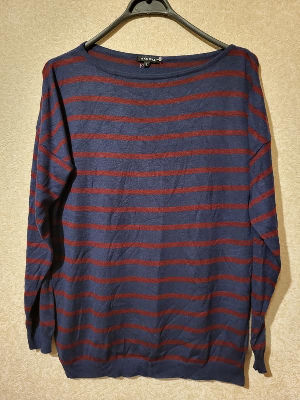 Полосатый жкнский реглан Amisu на демисезон бирка состава срезана, качество очень приятное без следов носки, с иголочкой размер евро 40/42 пог 52 тянется до 62 см длина. 62 рукав укорочен, от горловины 67 см