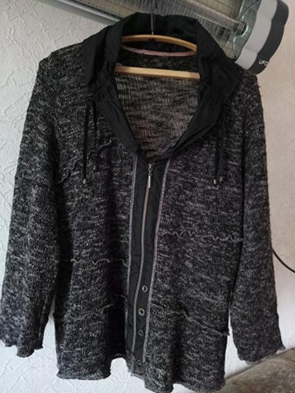 Продам вязанную , стрейчевую, удобную кофту женскую размер 50-54. Немного тянется во всех направлениях. Свободного фасона. По этому замеру буду писать в спокойном состоянии изделия. Замеры: длина 67 см, длина рукава от плеча 56 см, полу обхват подмышками 61 см, полу обхват в районе талии 56 см ( фасон свободный), по плечам 42 см