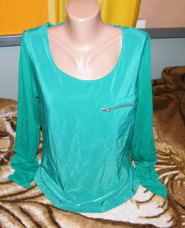 Спинка і рукава з віскози, перед виглядає як атласний. Колір зелений, симпатичний Стан дуже хороший Рукав - 69см Довжина по спині - 61см ПОГ - 49см